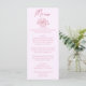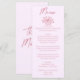 A colorful retro funky modern pink floral wedding dinner menu. Which features chic template design of boho vintage pink background on the front and back. With pink whimsical typography. Perfect and matching with the whole suite.
