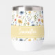 Add this charming watercolor wildflower pattern wine tumbler to your relaxing time. A perfect way to add a touch of whimsical elegance and springtime cheer to your day and keep hydrated. This delicate floral design features a dense, yet airy, repeating pattern of hand-painted wild poppies, forget-me-nots, and tiny meadow blooms in a beautiful palette of soft yellow, dusty blue, and pink. The light and airy watercolor style provides a refreshing and vintage-inspired aesthetic, making this wine tumbler a stand out and an envy to your friends. Make the wine tumbler truly your own by adding your name or your initials or your own text.