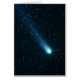 Une comète éblouissante crée une boule brillante et floue dans le ciel nocturne, suivie d'une queue bleue qui se déplace lentement parmi les étoiles dans cette vue stellaire améliorée.