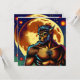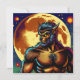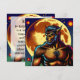 Une représentation aérienne d'un loup-garou debout devant la pleine lune avec des yeux brillants. Cet art aérien est fait dans un livre de bande dessinée pop art hyper réaliste style. Le dos de la carte donne une définition d'un loup-garou.