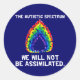 Le spectre autiste : Nous ne serons pas assimilés. Avec le logo de flamme d'arc-en-ciel.