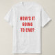 Un design simple avec le texte "Comment ça va finir ?", en rouge sur un arrière - plan blanc. N'hésitez pas à modifier la police, les couleurs et la taille du texte :)