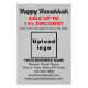 Heureux Hanoukka ! Un jour férié pour célébrer et remercier pour les bénédictions que nous avons reçues. C'est aussi l'un des jours fériés pour annoncer votre entreprise. Papier photo personnalisable avec Hanoukka Sale, votre nom d'entreprise et d'autres informations. Papier photo que vous pouvez utiliser comme matériel marketing pour attirer plus de clients. Customisez-le et utilisez-le pour convaincre plus de clients d'acheter vos produits ou clients à aimer vos services cette Hanoukka. Les couleurs design sont des textes noirs et rouges sur arrière - plan gris. Les contenus sont des salutations Happy Hanoukka, des textes de vente avec pourcentage de réduction que vous offrirez, des dates de vente, votre nom d'entreprise, logo, adresse, numéro de téléphone, e-mail et site Web ou votre page de médias sociaux d'affaires. Veuillez vérifier l'apparence après avoir téléchargé le logo et tapé des textes. Si l'apparence vous plaît, vous pouvez passer votre commande maintenant. Si vous avez besoin de redimensionner et déplacer le logo et les textes pour s'adapter sur ce papier photo ou sur la taille et le style que vous choisirez, s'il vous plaît changer dans l'outil de conception. Vous pouvez également effectuer d'autres modifications dans l'outil de conception en fonction de l'apparence de ce papier photo que vous préférez, comme changer la couleur arrière - plan, la couleur de police et le style de police. Heureux Hanoukka ! Je vous souhaite plus de ventes ce jour férié.