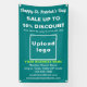Bonne Saint Patrick’s Day ! Un autre jour férié pour célébrer cette Marche et faire de la publicité pour votre entreprise ou pour promouvoir votre marque. Le vert shamrock est la couleur habituelle pour ce séjour mais essayez aussi d'autres tons de vert. Bannière turquoise et personnalisée avec Saint Patrick Sale, votre nom d'entreprise et d'autres informations. Cette nuance de couleur verte peut être la couleur qui correspond à votre thème de couleur d'entreprise. Bannière que vous pouvez utiliser comme matériel marketing pour attirer plus de clients. Customisez-le et affichez-le pour convaincre plus de clients d'acheter vos produits ou clients d'aimer vos services. Les contenus sont des salutations de la Joyeuse Saint Patrick, des textes de vente avec pourcentage de réduction que vous offrirez, des dates de vente, votre nom d’entreprise, logo, adresse, numéro de téléphone, courriel et site Web ou votre page de médias sociaux d’affaires. Veuillez vérifier l'apparence après avoir téléchargé le logo et tapé des textes. Si l'apparence vous plaît, vous pouvez passer votre commande maintenant. Si vous avez besoin de redimensionner et déplacer le logo et les textes pour tenir sur cette bannière ou sur la taille que vous choisirez, s'il vous plaît changer dans l'outil de conception. Vous pouvez également modifier la couleur arrière - plan, la couleur de police et le style de police dans l'outil de conception. Je vous souhaite le meilleur de la chance, de la joie et plus de ventes ce jour férié.