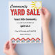 Circulaire de vente de triage communautaire ou de triage de quartier pour annoncer votre événement de vente de garage à l'ensemble de la ville. Joli soleil et maisons design pour attirer l'attention, customisez toutes les lignes de texte avec vos propres informations.