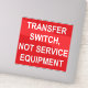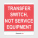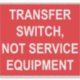 Un étiquette autocollant TRANSFER SWITCH, NOT SERVICE EQUIPMENT à utiliser par les électriciens pour satisfaire aux exigences de l'article 230.85(E)(1) et (2) du Code national de l'électricité de 2023.