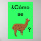 J'ai fait cette affiche pour raccrocher dans ma classe (je suis professeur d'espagnol). La question "Cómo se llama ?" est l'une des premières choses que les étudiants espagnols apprennent : "Quel est votre nom ?" Cette affiche est un rappel drôle et coloré à mes élèves qui s'applique très tôt dans l'année scolaire!
