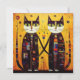 Compagnons Abstraits : Un conte de deux chats. Cette oeuvre présente deux compagnons de félin dans une étreinte éclatante. Les accents géométriques et les teintes dorées évoquent un sentiment de beauté et d'unité intemporelle. Elles sont ornées de motifs géométriques complexes et symbolisent l'harmonie. Leurs yeux percevants et leurs pattes enfermées invitation le spectateur dans un monde où l'art rencontre l'émotion.