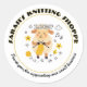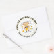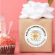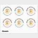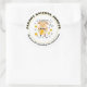 Round thank you stickers with logo template. White stickers with black text and gold text outline and circle border. Add your logo to the center. The square logo template will be the area for the logo. A round logo will fit into the square space. Sample wording is the business name curved around the top, with smaller text, "Thank you for supporting our small business", along the bottom.