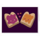 Le beurre d'arachide et la gelée est l'un des seuls aliments qui sont complètement compatibles ensemble et en amour. On y trouve deux tranches de pain au beurre d'arachide et à la gelée étalées et qui se regardent de manière adorable. Idéal pour les cadeaux de la Saint-Valentin ou de l'Anniversaire.