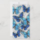 Vertical composition of réalistes, blue and white morpho butterflies on gray textured background. Morphine bleu.