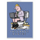Man is so addicted to the internet that he is in his bathroom and using his laptop whilst sitting on the lavatory. Cartoon of a man sitting on the toilet with his laptop. Funny blank card