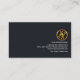 Au-dessus, les détails sont au mur droit avec le logo or en haut suivi du nom de l'entreprise, des coordonnées et du slogan pour faire connaître vos services.