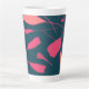 Cette tasse présente des pétales peints rose foncé et clairs dessinés à la main par un artiste expressif sur une surface noire.