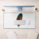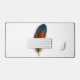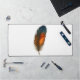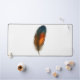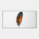 Une plume détaillée avec des couleurs riches en dégradé du bleu à l'orange.
