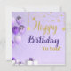 Célébrez les anniversaires avec style grâce à cette élégante conception d'anniversaire aux thèmes violet et or ! Avec des étoiles dorées scintillantes, des ballons de fête et des teintes violettes luxueuses, cette carte crée l'ambiance parfaite, à la fois joyeuse et moderne. Idéale pour envoyer des vœux d'anniversaire sincères ou décorer des invitations. Un mélange parfait de sophistication et de plaisir pour rendre chaque anniversaire encore plus spécial.