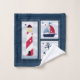 Un voilier, sauveteur de vie. Le phare, l'ancre et le tongs sur une serviette conçue par Charmaine Paulson.