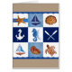 Dessin original peint à l'aquarelle par Sandra Gale, avec des blocs de dessins sur le thème nautique comme le poisson étoilé, l'ancre, le navire, la tortue et les coquilles. Conception idéale pour l'été, les maisons de plage, les bungalows ou pour tous ceux qui aiment la plage, l'océan ou le poisson.
