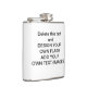 Taille : Flacon enveloppé par vinyle, 6 onces. Customisez ceci 6 onces. Le flacon liquide d'acier inoxydable de Courage™ pour un amusement et la hanche sur-le-vont accessoire. Votre texte, photos ou conceptions sont professionnellement imprimés dans la couleur vibrante sur le vinyle de haute qualité et de manière permanente enroulés autour du flacon. Le flacon de Courage™ de liquide est un grand cadeau pour des mariages, des anniversaires, et des événements spéciaux ! Six onces (6 onces.) Flacon d'acier inoxydable avec le couvercle à bouchon vissable attaché. Dimensions : 3,75 "" l "" 4,5 W X de X 1 conceptions du "" D. imprimées sur le vinyle de haute qualité et de manière permanente enroulées autour du flacon. Fait main dans le lavage de main des Etats-Unis avec de l'eau chaud.