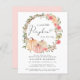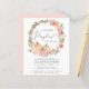 Une belle et élégante conduite économique par petite fille invitation à la douche avec "une petite citrouille douce est en route" écrit dans un mélange de typographie moderne douce et grise et un script avec un essaim de coeur, et une couronne de citrouille pastel rose et corail et aquarelles fleuries. Personnalisez facilement le nom de la mère et le lecteur par des détails de douche dans une simple typographie grise.