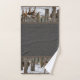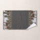 Une serviette de bain rustique réglée se perfectionnent pour un cabine en bois ou tout autre décor de pays. La serviette de main comporte une image que j'ai prise des cerfs communs de queue blanche dans les bois peu après une nouvelle neige sur un arrière - plan foncé avec des cônes de pin. La serviette et la lavette de bain coordonnées est le même arrière - plan foncé avec des cônes de pin et une frontière assortie de motif de diamant.