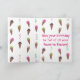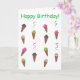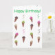 Ces cartes d'anniversaire présentent une peinture amusante de cônes de glace, en quatre saveurs, et des rubans dans les mêmes couleurs. Joyeux Anniversaire est le message sur le devant de la carte ; ce texte est écrit en vert. Le texte à l'intérieur dit, Que votre anniversaire soit rempli de toutes vos saveurs préférées, et il est écrit en rose. Les deux textes peuvent être personnalisés avec votre propre message. La couleur de fond est blanche et elle peut également être personnalisée. Merci de faire vos achats chez CherylsArt sur Zazzle.