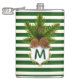 Flacon de boisson à thème hivernal réalisé dans un motif rayé vert et ivoire, avec des images d'une branche de pin avec des cônes de pin et une plaque décorative. Personnalisez le monogramme d'une lettre verte, pour vous-même ou comme une excellente idée cadeau pour vos demoiselles d'honneur et les groomsmen.