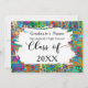 Célébrez votre diplômé préféré avec cette invitation graphique moderne et amusante. Les paramètres de modèle vous permettent d'ajouter le nom du diplômé, l'école secondaire et l'année de la classe de diplôme. Les mots "Classe de" ont été rendus en noir avec une police de script moderne de ma collection. Elles ont été transformées en un graphique qui peut être redimensionné ou repositionné comme vous le souhaitez. Tous les autres textes ont été configurés dans le modèle à l'aide d'une police serif polyvalente en noir ; la police et les tailles peuvent être modifiées au besoin. // La surface de la carte est recouverte d'un morceau de mon art qui est ensuite partiellement recouvert d'une série de coups de pinceau d'art blanc. L'oeuvre est un morceau festif et coloré de mon art abstrait qui présente des textures aquarelle superposées de formes confettis carrés dans de nombreuses couleurs différentes. // L'arrière comprend une version pivotée du design arrière - plan graphique, un petit coup de pinceau blanc au centre et une petite partie d'un capuchon de graduation au-dessus du badge. Vous pouvez choisir d'utiliser cette zone pour un monogramme, si vous préférez. // Conçu par Melody Watson pour Paper Muserie