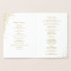 Un programme de mariage plié moderne et élégant avec typographie moderne et points confettis. L'avant et l'arrière de la carte sont imprimés à l'aide d'un papier REAL. L'intérieur de la carte n'est pas du papier peint.