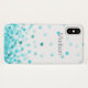 Ce Coque-Mate blanc élégant à peine There iPhone X Coque a un motif confetti bleu clair à bleu turquoise clair avec un modèle de nom personnalisable pour vous de personnaliser si vous le souhaitez, ou vous pouvez supprimer le nom si vous le préférez.