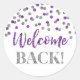 Confetti d'argent violet Welcome Back Sticker rond