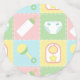 Quatre carrés aux pastels doux de rose, vert, bleu et jaune sont encadrés par un design blanc comme des points de couture et décorés d'icônes mignonnes sur le thème du bébé d'une bouteille, d'une couche, d'un hochet et d'un bib. Chaque confetti a un tache monogramme en forme de pacifiste à l'arrière, où vous pouvez le customiser avec la première du bébé pour créer une décoration de fête vraiment unique pour votre baby shower. Ce confetti sera assorti à n'importe quel autre produit de courtepointe pour bébé afin que vous puissiez facilement rendre votre événement aussi coordonné que vous le souhaitez.