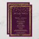Un Mariage Menus Invitations chic moderne et luxuriant bordeaux et faux or confetti confetti est parfait pour toute cérémonie élégante et sophistiquée. Ce design exquis et élégant et éblouissant, géométrique et tendance, est parfait pour une fille branchée et élégante ou n'importe qui. Customisez ce design avec votre propre message et des informations personnalisées. Tous les dessins sont imprimés.