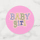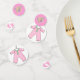 Un baby shower ou un genre de bébé doux révèlent des confettis avec des graphiques de empreintes de pied de bébé rose, pyjamas bébé et texte graphique lisant Bébé fille. Customisez d'ajouter du texte supplémentaire.