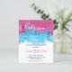 Une invitation à la fête de révélation de genre Bébé brillante et colorée. Sur un arrière - plan blanc, la fumée bleue et rose et les confettis de parties scintillant tombent lentement autour du texte typographique qui lit Baby Your Surname. Personnalisez en ajoutant tous les détails de votre événement à l'avant et à l'arrière.