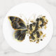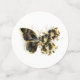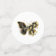Or flower butterfly with black jewelry orchid, decorated with gold leaves on white background.