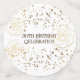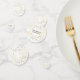 50e anniversaire Fête Confetti. Le design blanc et doré présente un script élégant et des confettis en étoile.