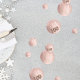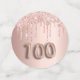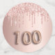 Fille et confettis féminin pour un 100ème anniversaire de table de fête. Un rose d'or faux métallique, à l'aspect feuille arrière - plan décoré avec des gouttes de parties scintillant d'or faux rose. Personnalisez et ajoutez son nom/texte. Lettres de couleur or rose foncé. Quelques jetons de confetti avec le nom et la date, d'autres avec le numéro 100 écrit avec une police de style ballon, et avec le texte Joyeux Anniversaire.