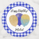 Un élégant motif en vichy bleu avec trois ballons d'or et de parties scintillant. Ajoutez votre photo.