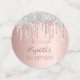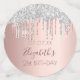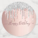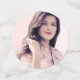 Fille et confetti féminin pour votre 21ème anniversaire table de fête. Un rose d'or faux métallique, à l'aspect feuille arrière - plan décoré avec de faux rose or et parties scintillant argent gouttes. Personnalisez et ajoutez une date et un nom/âge 21. Lettres de couleur or rose foncé. Quelques jetons de confetti avec nom et date, d'autres avec le texte : Joyeux Anniversaire écrit avec un script à la mode manuscrit avec des swashes. Ajoutez votre propre photo sur deux des puces.