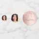 Fille et confetti féminin pour votre 21ème anniversaire table de fête. Un rose d'or faux métallique, à l'aspect feuille arrière - plan décoré avec des gouttes de parties scintillant d'or faux rose. Personnalisez et ajoutez une date et un nom/âge 21. Lettres de couleur or rose foncé. Quelques jetons de confetti avec nom et date, d'autres avec le texte : Joyeux Anniversaire écrit avec un script à la mode manuscrit avec des swashes. Ajoutez votre propre photo sur deux des puces.