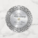 Commémorez votre 25e anniversaire de mariage avec ce design élégant, un mandala noir orné sur une Image de texture métallique argentée. Ils sont ornés de diamants blancs pour chaque heure - texte personnalisable en noir à l'intérieur d'un cercle brillant en argent.
