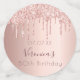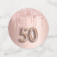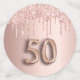 Fille et confettis féminin pour un cadre de table de fête de 50e anniversaire. Un rose d'or faux métallique, à l'aspect feuille arrière - plan décoré avec des gouttes de parties scintillant d'or faux rose. Personnalisez et ajoutez son nom/texte. Lettres de couleur or rose foncé. Quelques jetons de confetti avec le nom et la date, d'autres avec le numéro 50 écrit avec une police de style ballon, et avec le texte Joyeux Anniversaire.
