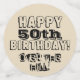 Au-dessus de la colline 50e anniversaire. Personnalisez pour n'importe quel âge pour homme ou femme. Texte noir amusant sur arrière - plan brun clair. La taille moyenne a des ballons volants en rouge, jaune, orange, vert, bleu sur un arrière - plan blanc à l'avant et à l'arrière. Saupoudrer les confettis de table sur les tables de fête pour un plaisir festif. Création graphique originale par TamiraZDesigns.