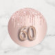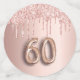 Fille et confetti féminin pour un cadre de table de fête de 60e anniversaire. Un rose d'or faux métallique, à l'aspect feuille arrière - plan décoré avec des gouttes de parties scintillant d'or faux rose. Personnalisez et ajoutez son nom/texte. Lettres de couleur or rose foncé. Quelques jetons de confetti avec le nom et la date, d'autres avec le numéro 60 écrit avec une police de style ballon, et avec le texte Joyeux Anniversaire.