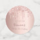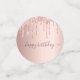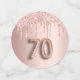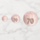 Fille et confettis féminin pour un cadre de table de 70e anniversaire. Un rose d'or faux métallique, à l'aspect feuille arrière - plan décoré avec des gouttes de parties scintillant d'or faux rose. Personnalisez et ajoutez son nom/texte. Lettres de couleur or rose foncé. Quelques jetons de confetti avec le nom et la date, d'autres avec le numéro 70 écrit avec une police de style ballon, et avec le texte Joyeux Anniversaire.