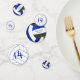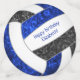 Ce joli confetti d'anniversaire de volley-ball présente l'image d'un volley stylisé avec des panneaux bleu foncé, noir et blanc sur le devant de chaque pièce de confetti, sur lequel vous pouvez customiser le texte - personnaliser son âge sur le dos sur un simple graphique blanc de volley-ball - les panneaux noir et bleu du volley-ball sont mélangés avec un subtil motif kaléidoscopique floral pour un texto apparence artistique et girly - par katz_d_zynes