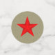 Ce confetti de table a de grands cercles avec un petit ange victorien blond dans une cape rouge tenant un petit sapin de Noël sur un arrière - plan bronzé avec des taches blanches. Les cercles moyens sont rouges avec Joyeux Noël en Or. Les petits cercles ont une étoile rouge vif sur l'arrière - plan tan.