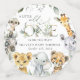 Ajoutez une touche personnelle à votre fête de baby shower avec ces objets de fête élégants et mémorables ! Le design présente des animaux de la jungle (girafe, zèbre, lion, éléphant, guépard, meerkat, rhinocéros) et des feuilles d'eucalyptus sur arrière - plan blanc.