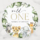 Ajoutez une touche personnelle à votre fête d'anniversaire avec ces objets de fête élégants et mémorables ! Le design présente des animaux de la jungle (zèbre, lion, éléphant, girafe) et des feuilles de palmiers sur arrière - plan blanc.